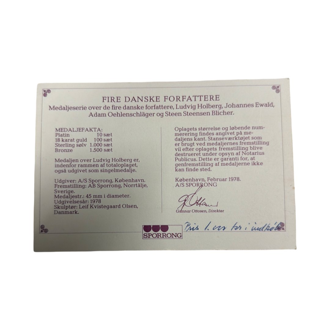 Fire Danske forfattere medaljer i sterlingsølv