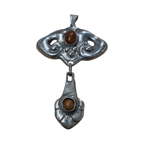 Art Nouveau sølv / Rav vedhæng Stemplet 830 sølv Højde 9 cm Super flot stand